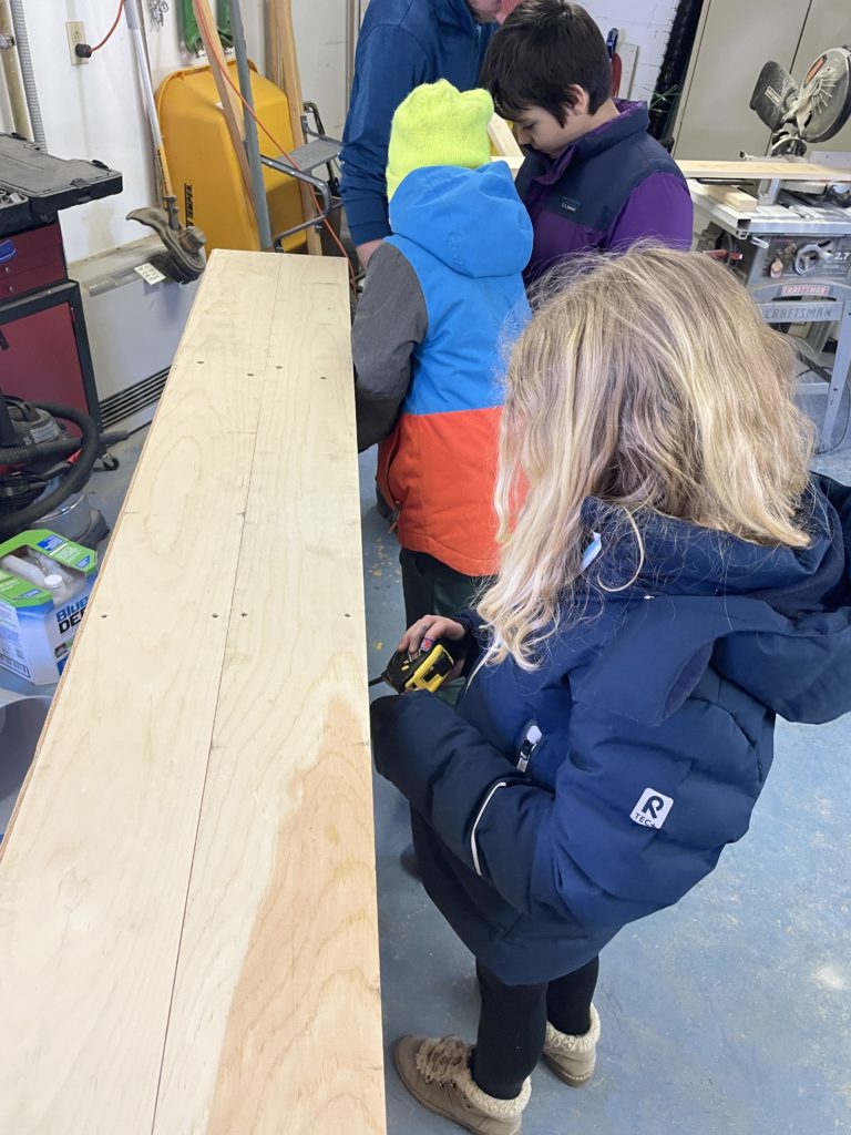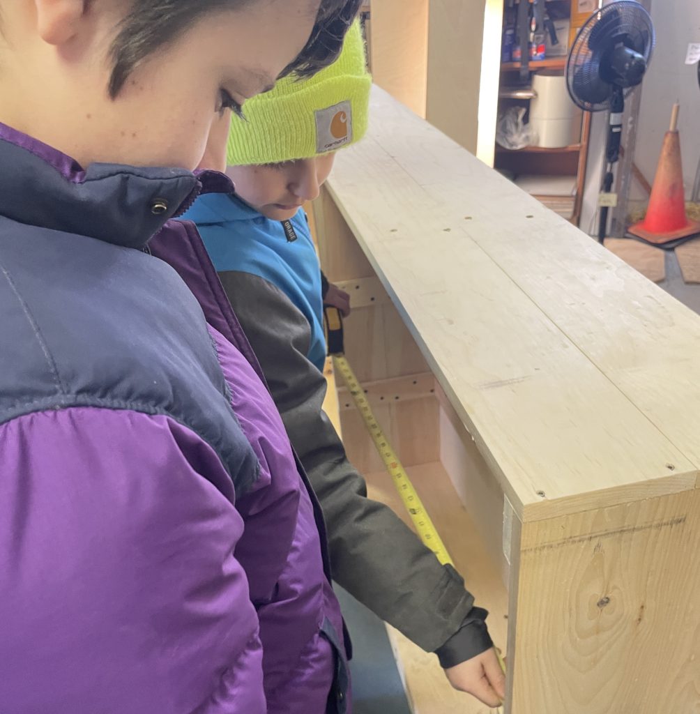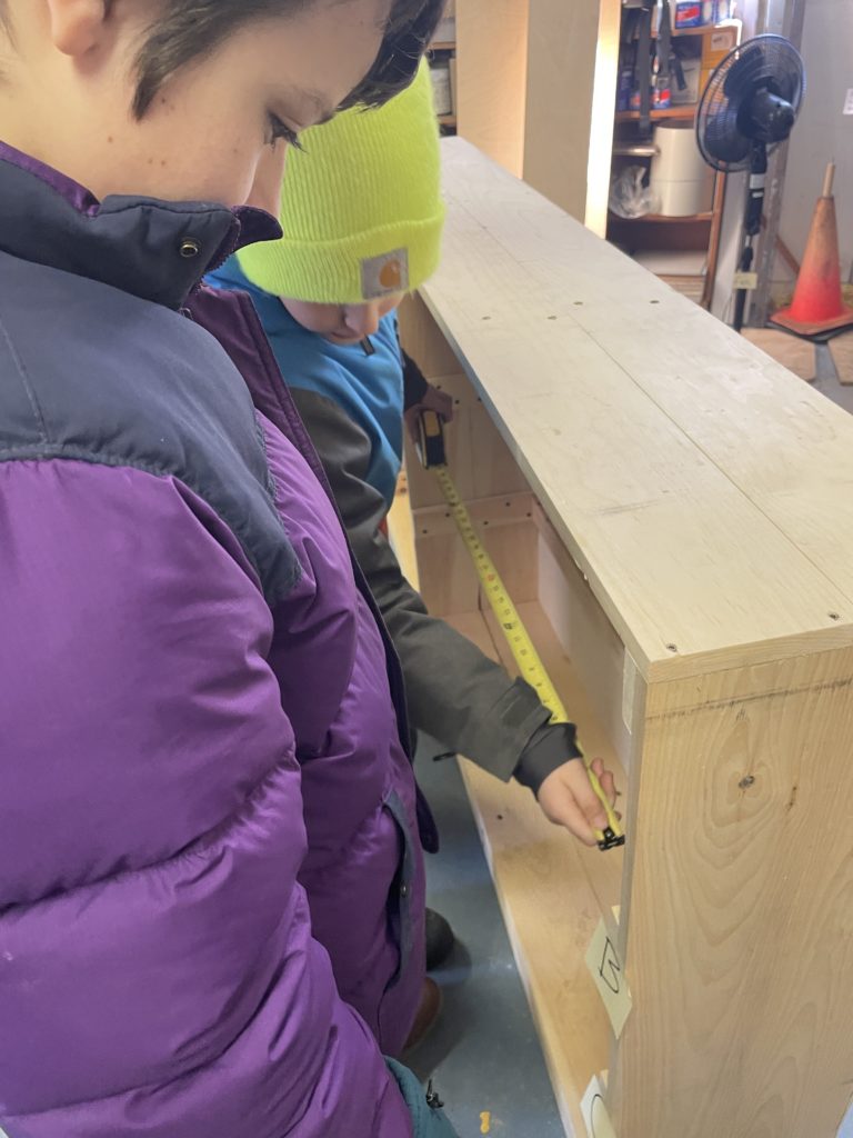 Third Grade is getting a new bookshelf for their classroom, and learning along the way. They’re getting the chance to measure the sizes of the shelves and writing their measurements with fractions. Then, Mr. Niles checks their measurements, makes the cuts, the 3rd graders then place the shelves. Thanks to Mr. Niles and Mr. Bellwood, they’re learning a little bit about how to build things using wood!