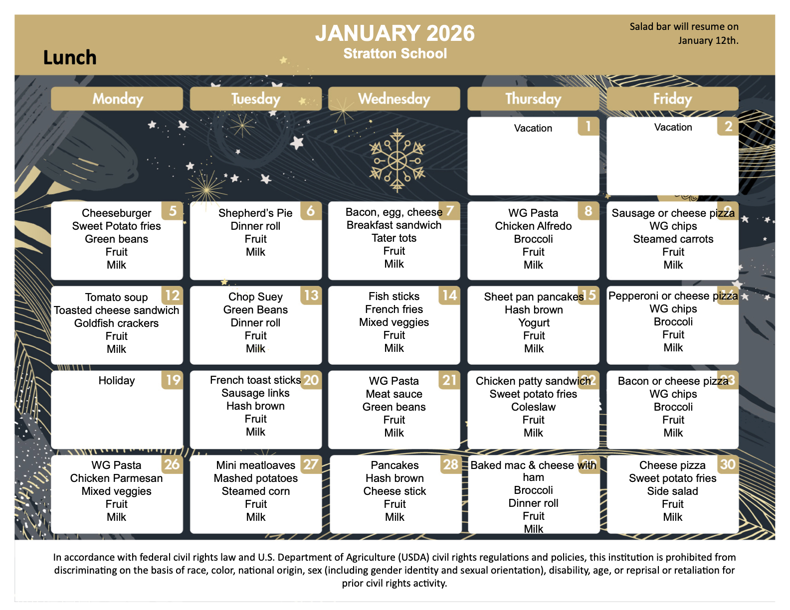 January Lunch Menu: