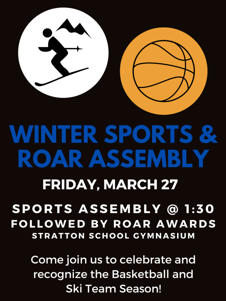 - Winter Sports and ROAR Assembly, starts @ 1:30